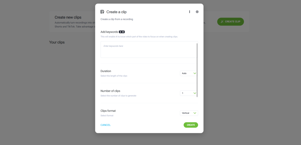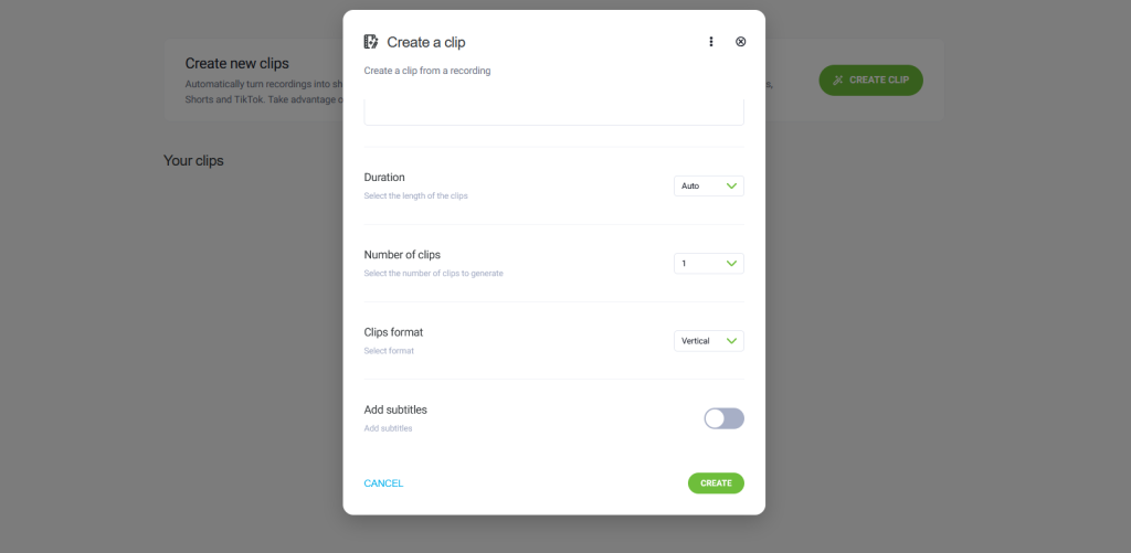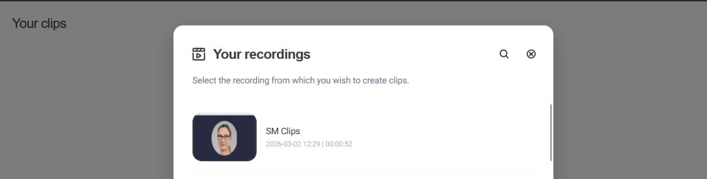Select the recording from which your clip will be created.