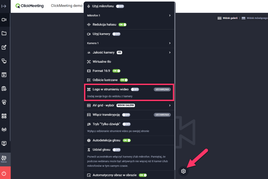 - W ustawieniach dźwięku/obrazu włącz opcję Logo w strumieniu wideo i dodaj wybrany obraz.