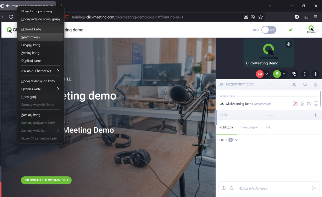 4) Nic nie słyszysz? Odśwież stronę i sprawdź wyciszenie karty.