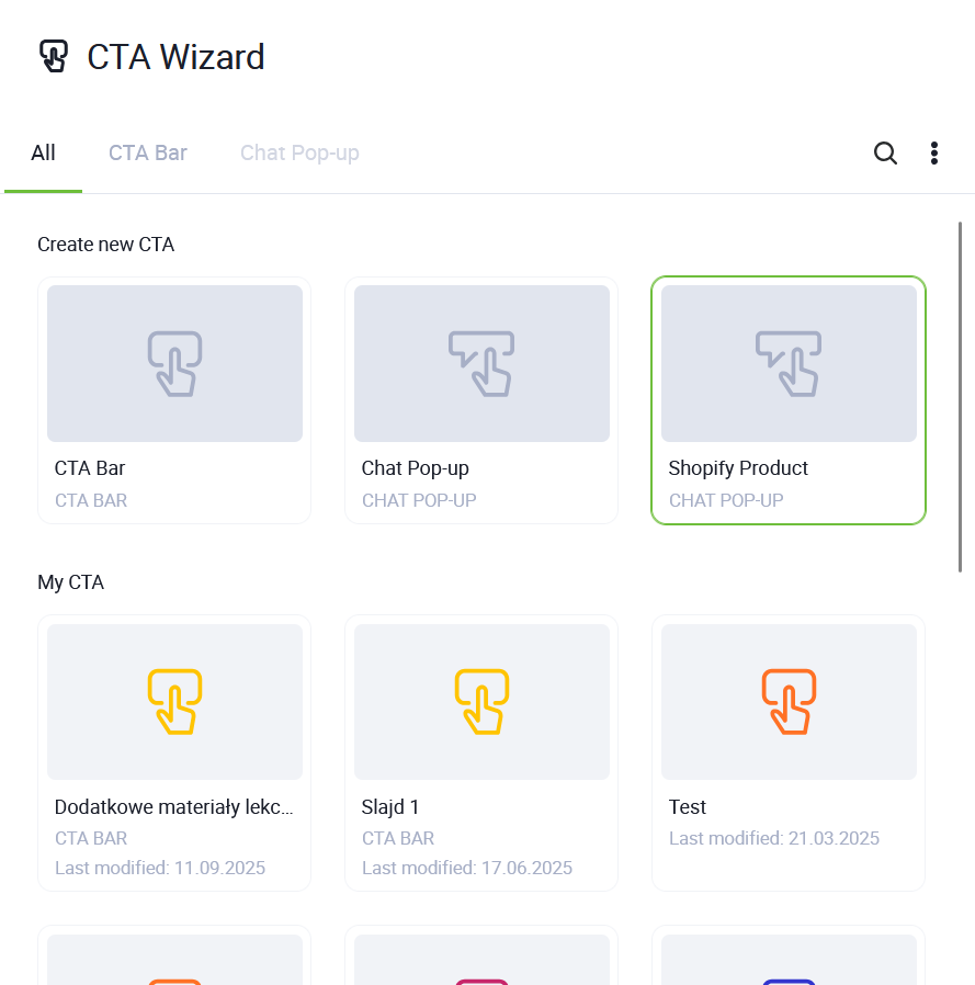 - Дублировать — Возможность создать копию выбранного CTA, чтобы легче модифицировать его версию или использовать в различных мероприятиях.